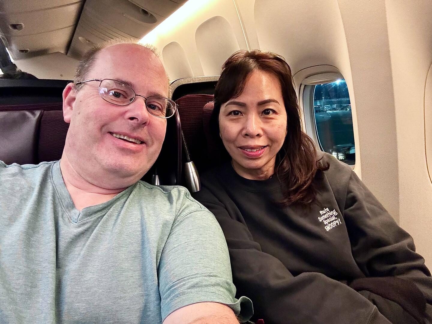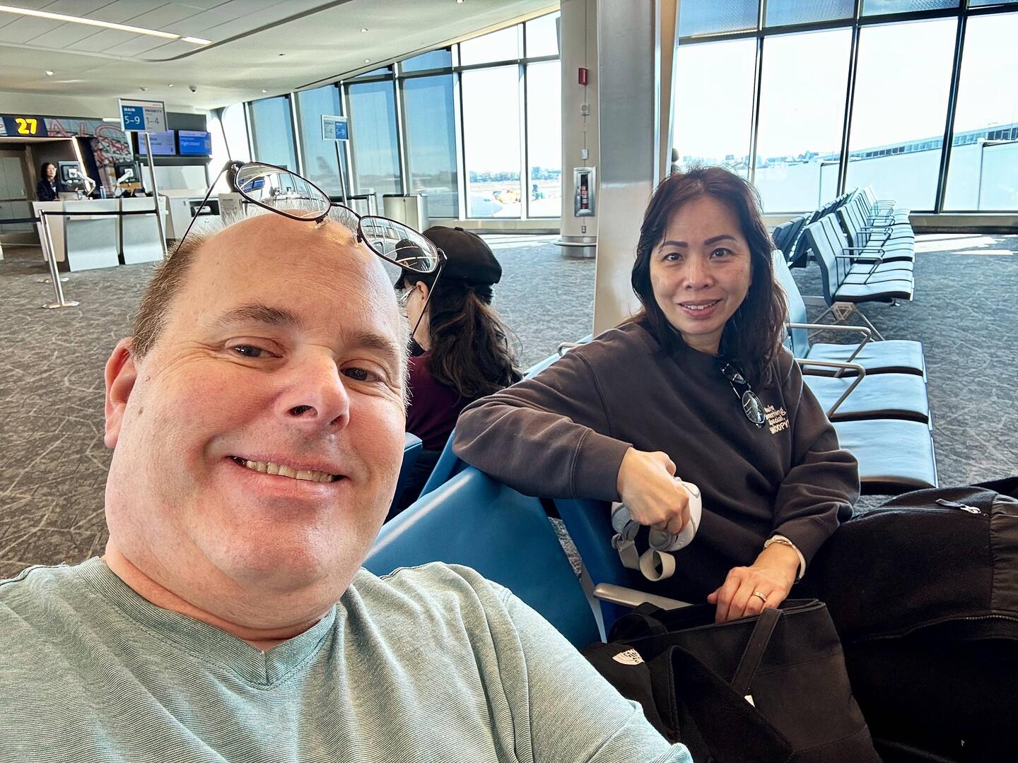 We’re at the gate and waiting to board. The first leg of this trip will take us to Chicago where we’ll change planes to go on to Tokyo.
