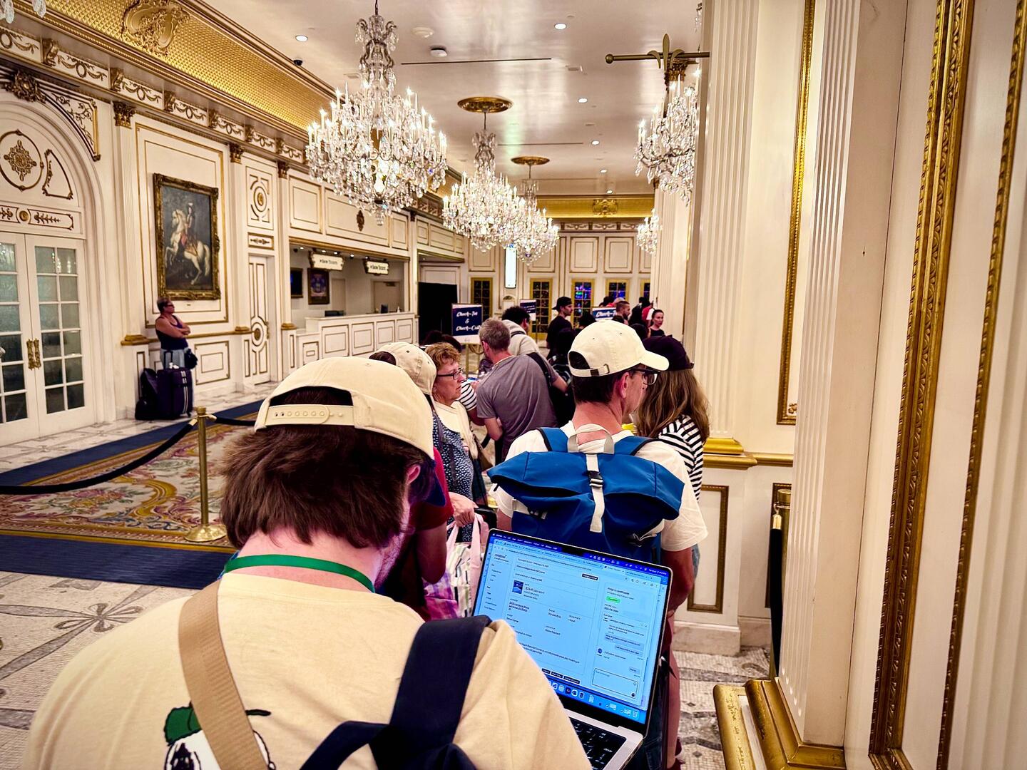 We can check into our hotel room now but the line is horrific. It’s moving a bit faster than we had expected it to but that doesn’t make it any better. There’s an online check in process but theもっと詳しく