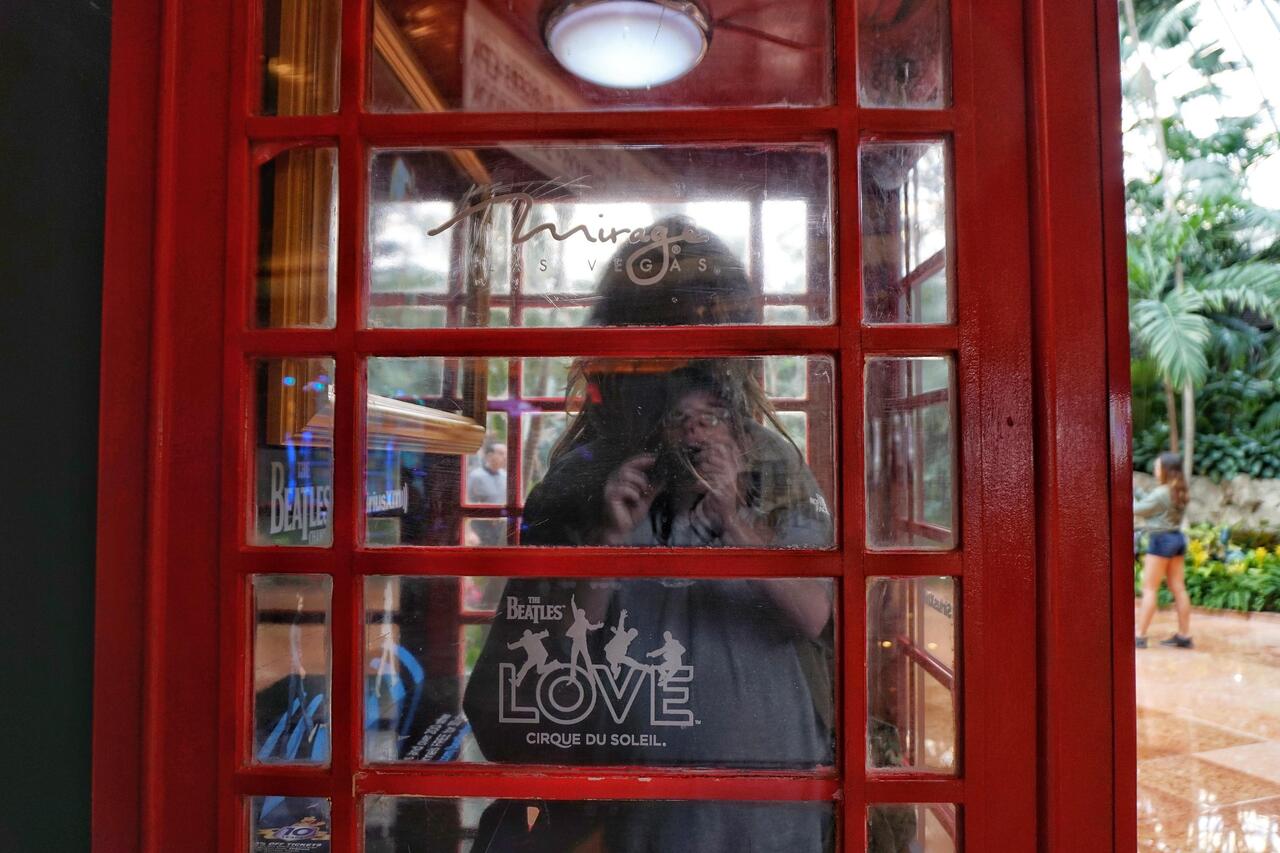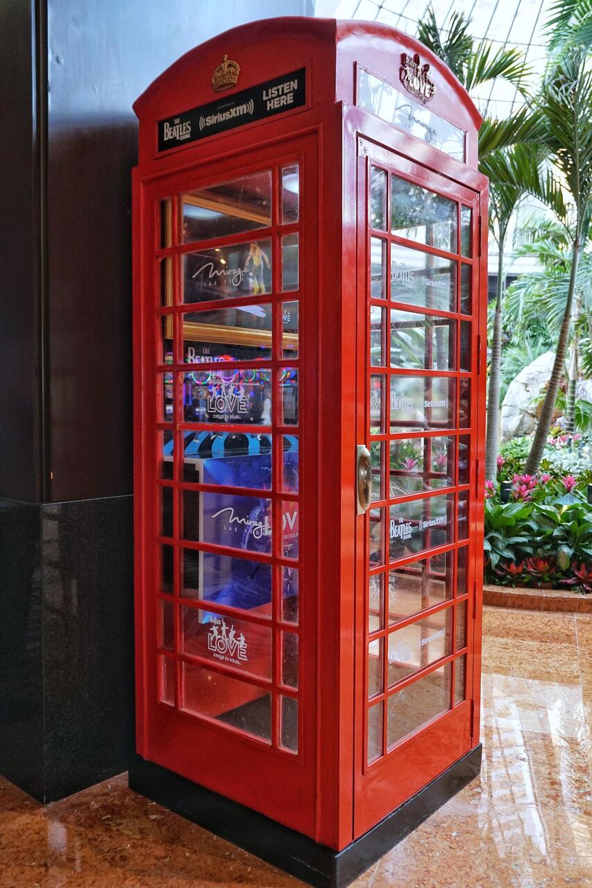 This British phone booth was inside the Mirage, right next to the big atrium. You can't make calls but when you use the phone, you hear information about the Beatles Cirque du Soleil show. We're sortLæs mere