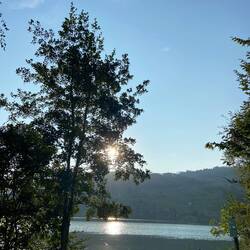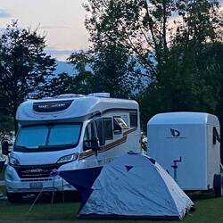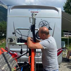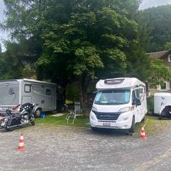 Aufgestanden 7.30 Werner fährt mit Velo um den See. Ich räume die ganzen Motorradsachen ,Grill und alles schwere wieder in den Anhänger.