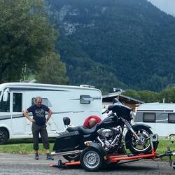 Start ca 9 Uhr mit Anhänger und Harley.🏍️