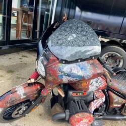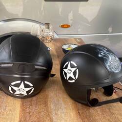 Unsere Männer bringen unsere Helme zum Auf hübschen ins Harley Dorf.