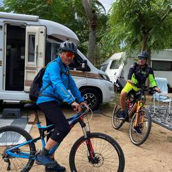 Die Männer fahren Fahrrad.Am Abend hatten wir noch Besuch von Helloweenkindern.das ist das Motto vom Campingplatz dieses Wochenende.Süsses oder Saures .
