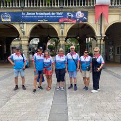 Wir sollen vor dem Eingang warten,wir fahren in Kolonne in dem Park