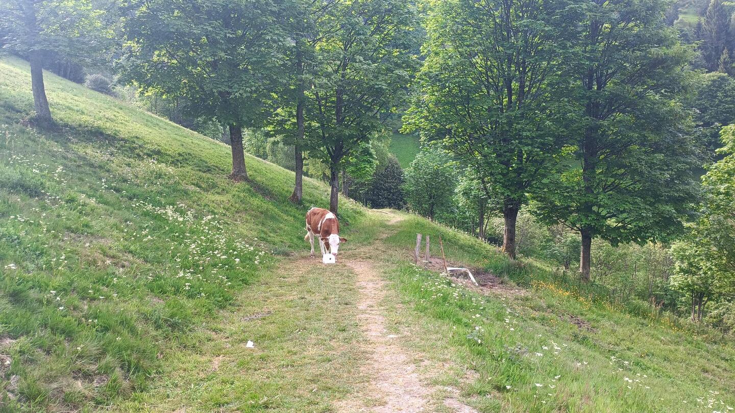 Nach einer entspannten Nacht sind wir morgens durch unsere erste Kuhweide mit niedlichen Kälbchen ins Dorf wo wir uns ein leckeres Pain Au Chocolat und Kaffee gegönnt haben :) beim (steilen!)Read more