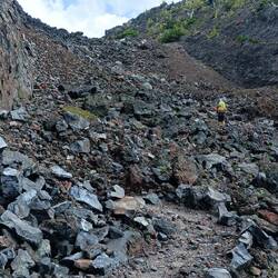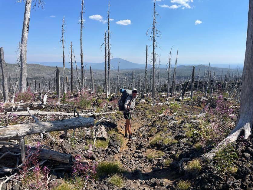 Heute ging es weiter über Lava Gestein und durch verbrannten Wald. Unsere Füsse haben sich nach wenigen Kilometern schon angefühlt wie durch den Schredder gejagt 🙃