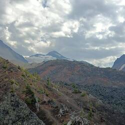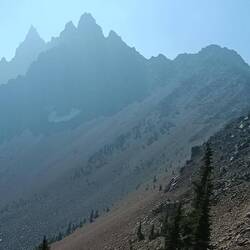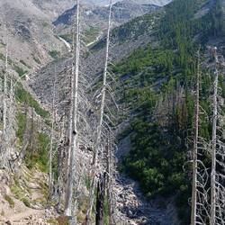Heute ging es wieder viel durch verbrannte Gegenden. Dadurch sind wir aber in den Genuss einer wunderschönen Aussicht auf die Three Sisters ( 3 herausstechende Berge über 3000m )gekommen.
