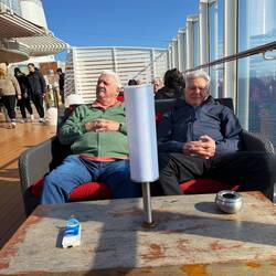 Nachdem wir während der Woche super sonniges Wetter hatten, wurde es auf der Rückreise kühler und nebelig. Also haben wir die Annehmlichkeiten des Schiffes nochmal ausgiebig genossen.