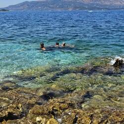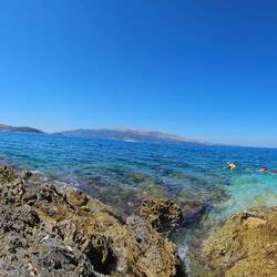 Mega kleiner Strand frei zur Bademöglichkeit in kristallklarem Wasser. Viel schöner als alle anderen Strände in Ksamil, die völlig überfüllt sind.