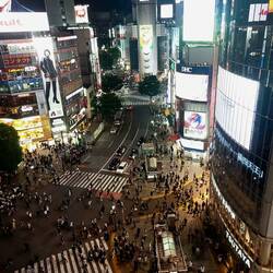 Stuck around so long it got dark. We went to an observation point high above the busy intersection and took a few more photos.