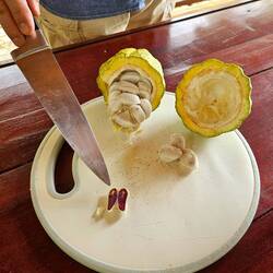 Wir sind in der Anita Rainforest Ranch, deren Besitzer Pablo und Ana seit mehr als 20 Jahren Kakaopflanzen selbst anbauen und auch Schokolade herstellen😍