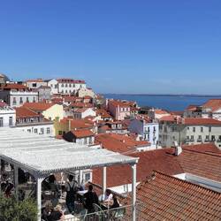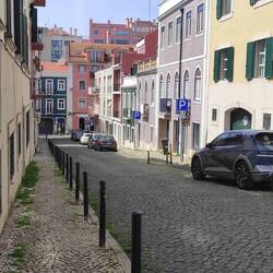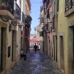 Walked up some hills and then caught the 28 tram over to Alfama where I found some little windy streets and ate some ice cream and saw some crowds and then caught it back the other way all to the end where I stopped and had a beer and did some homework.