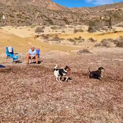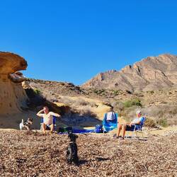 Zum Abschluss lecker gegessen bei Monica. Jörn freute sich über eine Paella con conejo für eine Person und natürlich über ein Czytaj więcej