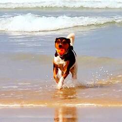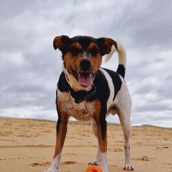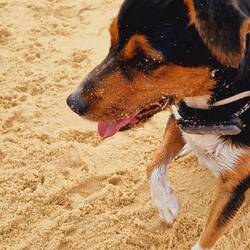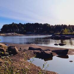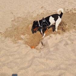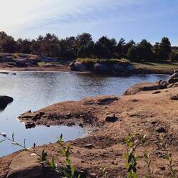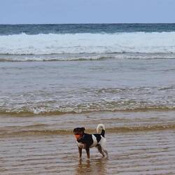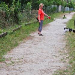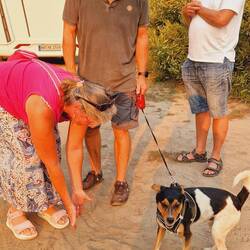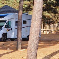 Sehr schöner Freistehplatz unter Bäumen nahe am Strand. Pelle hat es hier gut gefallen, weil er ohne Leine laufen konnte.
