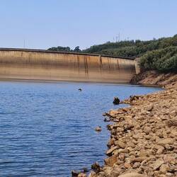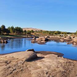 Links von der N2 sichten wir einen Stausee, der noch Wasser hat! Hier ist ein guter Platz für die Mittagspause!