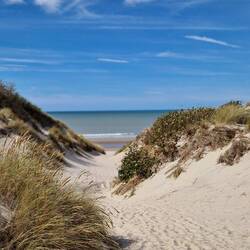 Auf dem Campingplatz in Stella Plage / Camping de la mer haben wir einen der letzten Plätze bekommen. Naturnah und hinter der Düne der Atlantik.