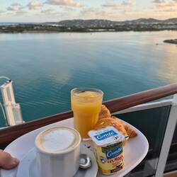 Frühstück heute an Deck - Landausflug mit Strand - Another Day in Paradise - St. Lucia ist sehr schön - hügelig - klein - natürlich türkise Strände mit weissem Sand - viel Bauarbeit - vielRead more