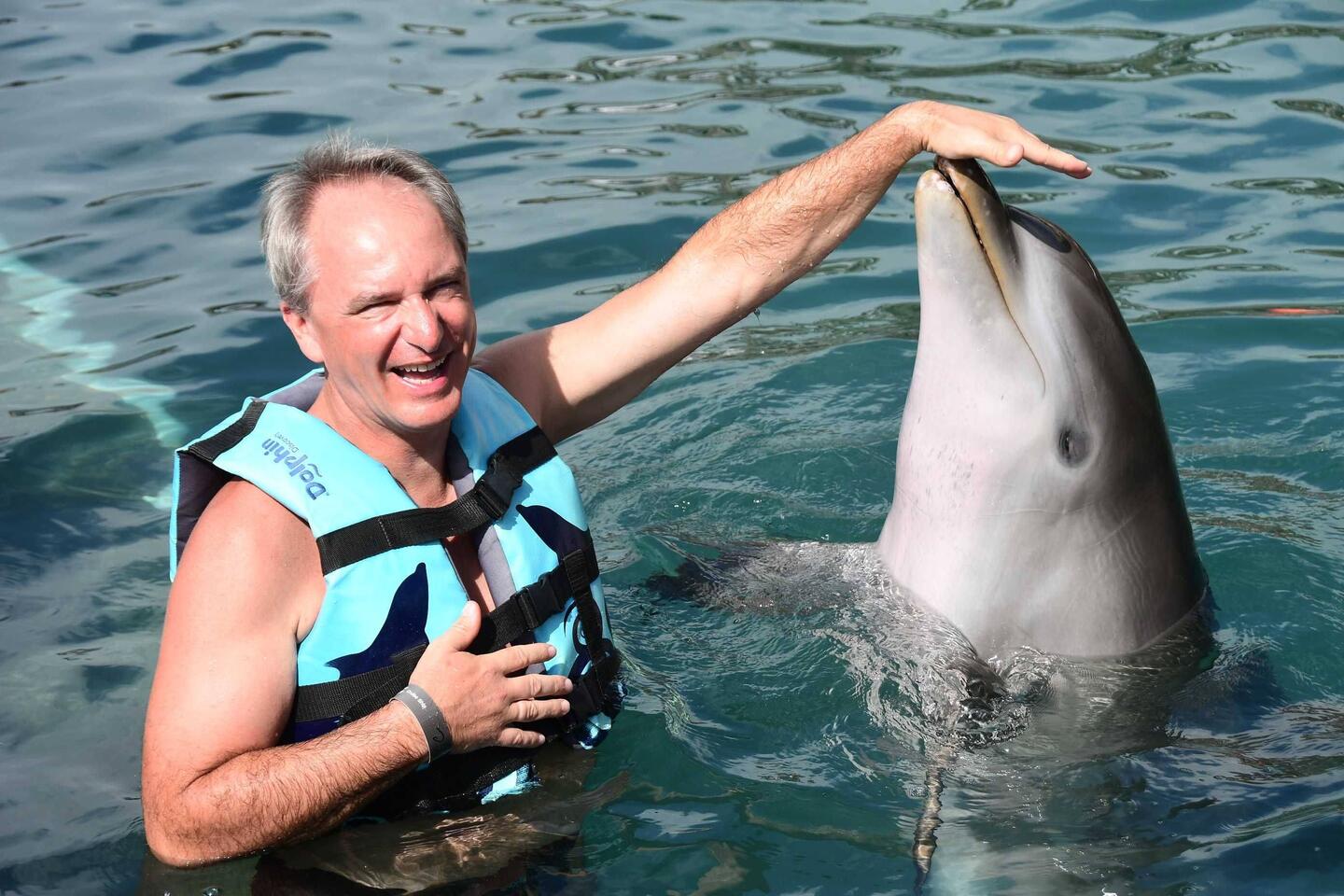 Heute ist eines der Reisehighlights - schwimmen mit Delfinen. Dante hat unser Delfin geheissen.
