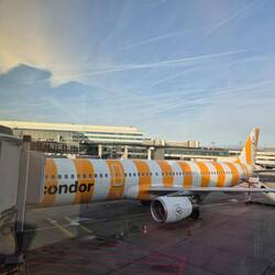 Mit blau gestreift von Martinique nach Frankfurt - mit gelb gestreift zurück nach Wien. 2h auf Bank am Flughafen geschlafen.