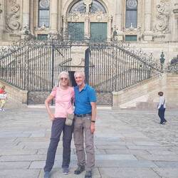 Da vor Santiago-de-Compostela die verschiedensten Pilgerwege aufeinander treffen, waren entsprechend viele Pilger auf dem Weg. Natürlich auch einige die wir kannten...Am schönsten war aber das Wiedersehen in Santiago mit Lionel und Adèle. Sie haben  zufällig in der selben Herberge eingecheckt wie wir! Morgen sollen dann, wie wir erfahren haben, Partick und Françoise noch dazu kommen, das gibt bestimmt ein "Chäferfescht"!