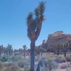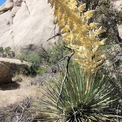 Very special in this area are the many Joshua trees which grow everywhere in the Mojave desert, which make the area look a bit surreal as in a video game. Actually they are not really trees, they belong to the family of yucca. Almost every part of this plant has been or is used by other desert dwellers, people as well as animals. People used is to wove its fibres to make baskets, sandals or mats. Beechy ground squirrels, birds and deers eat the creamy white blossoms (see pic attached), bees get their nectar and produce the yummy desert honey. Later fruits and seeds provide food to antilopes, ground squirrels and other small animals. Woodpeckers drill in tree trunks. Even after death a Joshua tree trunk provides a home to ants, scorpions and lizards. It is a tree of life.