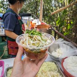 Some of the foods we tried... Khao soi, Nam gniao (local chiang mai soups servedLeia mais