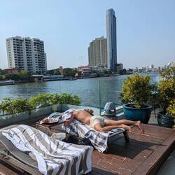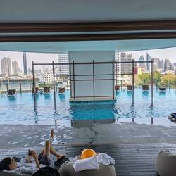 After breakfast at tiffany's (more like asian grandma's) we headed over the murky Chao Phraya River on a taxi boat to the Hilton pool, and when the sun disappeared we relocated to the Sheraton.Leia mais