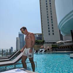 There's no one better to enjoy decadence with than Miles, in my new kimono, and the backdrop of the Bangkok skyline.