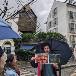 Our tour guide brought us along the Bateau Lavoir, a tongue in cheek name for the very poor, small, dark, dirty, housing place where many of the famous Montmartre artists lived, among them Picasso.Leia mais