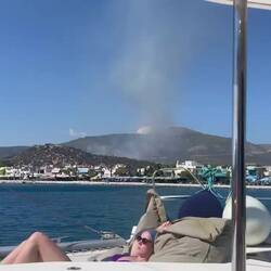 Plötzlich erreichten uns Alarmmeldungen der Regierung auf unseren Handys: Feuer in der Umgebung. Tatsächlich sahen wir riesige Rauchschwaden über den Hügeln und auch direkt hinter dem Hügel in der Nähe der Bucht.