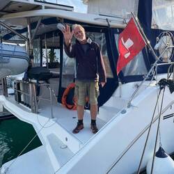 Um Punkt 07:00 Uhr, noch vor dem ersten Kaffee-Kick, docke ich elegant bei Lothars Katamaran an. Der Skipper wechselt samt Grinsen und Kaffeebecher auf die AMBIRAMUS über – das Abenteuer ruft.
