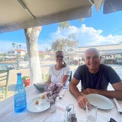 Ist aber trotzdem eine willkommene Abwechslung, unter der Sonne Griechenlands und immer wieder in anderen schönen Buchten, der Arbeit nach zu gehen und gleichzeitig von ihrem Liebsten verwöhnt zu werden.