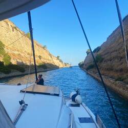 Ein besonderes Highlight war die Durchquerung des Verkehrstrennungsgebiets südlich von Athen. Man könnte sagen: die A2 der Ägäis, allerdings ohne Raststätten, dafür mit deutlich mehr Adrenalin. Hier donnern die Fähren, Highspeed-Multihulls und Tragflächenboote mit bis zu 30 Knoten vorbei – also in Geschwindigkeiten, bei denen Segler wie wir eher wie Stehzeuge wirken.