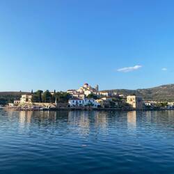Mit dem Dinghy ist Poros-Stadt schnell erreicht – perfekt für Einkäufe oder einen kleinen „Stadtbummel light“. Und ich? Ich bleibe hier erstmal eine Weile. Auf einem Segelschiff gibt es schließlich immer etwas zu tun: Leinen sortieren, Schrauben nachziehen … und natürlich die wichtigste Aufgabe von allen – ausgiebig relaxen. 😂🍹⛵️