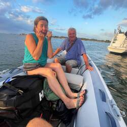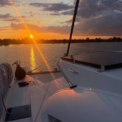 Als die Sonne am Morgen den Horizont küsste, legten wir ab und verabschiedeten uns von Peter & Kerstin.