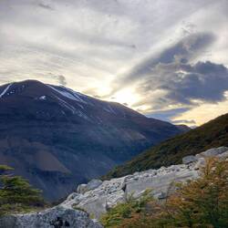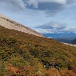 Bon, il faut savoir que les parcs nationaux au Chili sont tous payants et extrêmement cher. Celui là c'est plus de 21€ pour aller simplement marcher dans la nature. C'est donc pour cela que l'on choisit de passer un grillage en mode incognito et de rejoindre le chemin de la randonnée un peu plus loin. Du moins, on pensait que c'était le chemin car arrivé sur le flanc de la montagne on se rend compte qu'on arrive depuis un ancien chemin fermé. Le soucis c'est qu'il y a 2 personnes de la CONAF (Les gardes forestiers en gros) qui nous demandent nos tickets. Bon après avoir essayé de faire les randonneurs perdus qui ne savent pas parler espagnol et qui ne savaient rien de cette soit disant entrée payante, on finit par se rendre à l'évidence, on ne pourra pas monter le dernier kilomètre qui nous sépare du mirador. En effet, le gars nous dit qu'on va devoir redescendre pour payer l'entrée et comme il est trop tard pour remonter, qu'il faudra sûrement attendre le lendemain pour revenir. Pour nous c'est mort, on reste 30min à argumenter si il faut mais on ne va pas faire demi-tour si prêt du but. Et ça marche ! Ils acceptent de nous laisser passer si on reprend le chemin classique et que l'on paye à la sortie (ce que l'on fera).