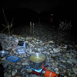 Bref il est 20h, il fait nuit et froid, on tente de faire du stop pendant 1h sans succès. On plante donc notre tente en camping sauvage un peu plus bas pour être à quelques mètres du lac. Pâtes au thon sous les étoiles au beau milieu de la Patagonie. Seul au monde. Que rêver de mieux..