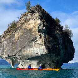 Ce matin, c’est levé 6h30 pour aller faire du canoë dans les Cuevas de Marmolle. Il s’agit d’énormes formations rocheuses au milieu du lac General Carrera érodées par l’eau, le vent et le soleil. Véritables bijoux de géologie et berceaux de nombreux mythes, on peut en théorie se marier dans celle qu’on nome La Capilla de Marmolle (chapelle en espagnol). On fait la visite avec un guide qui nous explique toute leur l’histoire, accompagné des 2 français rencontrés la veille qu’on a convaincu de venir avec nous. On rentre aux alentours de midi, et on décide d’aller visiter la ville après avoir manger. Le soir, c’est petit apéro avec nos copains français.