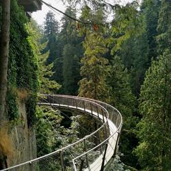 Eine Oase mitten in North Vancouver - über den Capilano River spannt sich seit 1888 die 136m lange und 70m hohe Brücke - damals noch aus Zedernholzplanken und Tauen aus Hanf. Heute immernoch rechtLæs mere