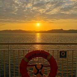 Ein Tag auf See - 5 Uhr aufstehen hieß es heute, langes Warten beim Check-in, denn erst gegen 7 ging es auf die Fähre und um 8 so richtig los. Und dann 16 Std. durch die schönste Natur bei Sonne,Læs mere