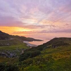 Was für eine herrliche Sicht von Drumbeg auf die Eddrachillis Bay - 35 kleine und größere Inseln sind hier verstreut. Der Weg war ein kleines Abenteuer, aber es hat sich gelohnt und zum GlückLæs mere