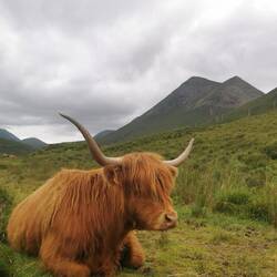 Erstmal einen schönen Platz zum Pause machen gesucht und lecker gegönnt 🍃 Weiter geht's durch die schöne Landschaft vorbei an der Sligachan Brücke und Highland Cattles begegnen wir auch noch.