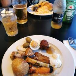 Nicht im Pub, wie anfangs geplant. Dafür aber an einem hübschen Sandstrand bei feinstem Wetter ☺️ Für jeden noch einen Chocolate Trifle und dann heißt es entspannen, den Wellen lauschen undLæs mere