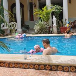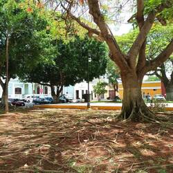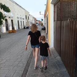 In Merida angekommen, fällt die Wahl auf eine Uberfahrt die uns ins Hotel bringen soll. Mit 4 Rucksäcken und zwei faulen Kindern, haben wir jetzt einfach keinen Bock auf einen 30min Fußmarsch. Wir stehen in der Lobby. Die Uhr sagt 10:30Uhr. Die Rezeptionistin sagt, Check-in erst ab 15Uhr. Meine Booking App sagt dasselbe. In diesem Moment frage ich mich, warum ich unbedingt um 6Uhr aufstehen wollte um den ersten Bus nach Merida zu erwischen. Die Antwort mag wenig überraschen. Ich habe nämlich keinen blassen Schimmer. Wenigstens dürfen wir unser Gepäck im Hotel abgeben. Also behalten wir nur einen kleinen Rucksack und erkunden die Gegend . Für uns kein Problem. Für die Kinder schon. Denn gleich neben der Rezeption ist der Hotelpool. Und weil die Kids natürlich keine Ahnung haben was 4Std bedeutet, wollen sie am liebsten direkt neben dem Pool warten bis es 15Uhr schlägt. Nach einer langen Überredungsphase machen wir uns auf den Weg. Und an der Stelle sei eins gesagt. Auch wenn sich hier alles super schön liest... Es ist auch super schön 😅 aber mit den Kinder natürlich auch anstrengend. Sie lieben es mit uns Zeit zu verbringen und vieles zu erleben. Aber die Spontanität nagt schon sehr an den Kindern. Man muss die Dinge hier eben nehmen wie sie kommen. Und man muss oft spontan umplanen oder sich anpassen. Und das fällt den Kids schon auch schwer. Und dann bei 38Grad immer Geduld aufbringen ist für uns auch nicht leicht. Aber erstens hält sich die Waage auf der "wir sind Happy"-Seite und zweitens hab ich das Gefühl, dass es von Tag zu Tag besser wird.