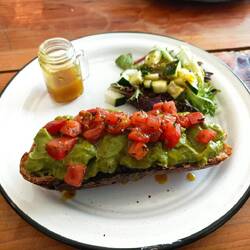 Heute hab ich uns Mal selbst Frühstück gemacht. Omlette mit Tomaten und Avocados. Dass die Acovados hier ein cremiger Traum sind, verstehst sich von selbst.