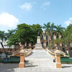Im Lauf des Tages kommen wir in Campeche an. Das liegt direkt am Meer aber ohne Strand.