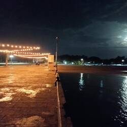 Es ist fast halb 11 Uhr nachts und stockfinster. Ich sitze am vorderen Ende eines Fischerstegs über dem Meer. Es ist Ebbe, eine kühle Brise geht und es ist ruhig. Wirklich ruhig. Links von mir sind ein paar alte Herren die ihre Ruten auswerfen. Keiner redet. Rechts von mir sind zwei Jungen um die 10Jahre. Sie werfen selbstgebastelte Ruten aus. Sie bestehen scheinbar nur ein alten Plastikflaschen und einer Schnur. Ich erkenne nicht genau wie sie funktionieren. Aber offensichtlich klappt es. Neben mit liegen ein paar Fische die gerade zu klein zum Verspeisen sind. Auf dem Weg hier her spaziere ich den Strand entlang. Es begegnen mir ein paar Familien mit kleinen Kindern, die gerade auf Muschelsuche sind. Im Prinzip besteht der Strand aus 50% Muscheln. Also muss man eher sagen, sie sind auf der Suche nach besonderen oder einzigartigen Muscheln. Auf dem Weg sehe ich außerdem ein paar Jugendliche die im Scheinwerferlicht ein wenig kicken. Die Welt scheint hier in Ordnung.