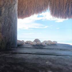 Unser Hotel ist so unauffällig, dass wir es kaum finden. Man muss praktisch über den Strand reingehen. Kein Schild. Kein echter Eingang. Man muss es einfach wissen. Mit aller Mühe kann ich es weder beschreiben, noch Fotos davon machen wie unfassbar romantisch hier alles ist. Hier ist alles so zusammengeschustert. Alles handgemacht. Gemütlich. Mit Liebe. Während wir so am Strand sitzen, stellen wir fest, dass unser Hotel in Sichtweite das größte von allen ist. Hier ist kein Tourismus. Nur alle hundert Meter sind ein paar Leute am Strand. Zwischen MiniHotels und Meer sind ein paar Strohhütten in denen man was trinken kann oder ein paar Souvenirs kaufen kann. Fragt sich nur , wer hier einkaufen soll. Es sind natürlich noch andere Urlauber da, außer uns. Aber das sind fast ausschließlich auch Mexikaner.