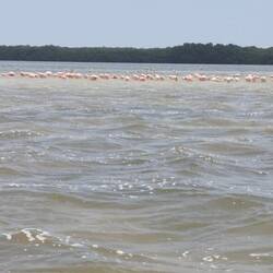 Wieder raus aus Wald ist das Wasser ist nun so seicht, dass wir gerade noch vorwärts kommen. Unsere Augen sehen nun einen Traum in Rosa. Eine beträchtliche Herde von Flamingos. Wir haben sie schon dutzende Male im Zoo gesehen. Aber noch nie waren sie so wunderschön wie heute! Der Bootsmotor ist mittlerweile aus, damit wir die Tiere nicht erschrecken und der Guide erklärt uns auch, dass er einen gesunden Abstand halten möchte, um den Tieren nicht unnötig auf die Pelle zu rücken. Und nun passiert etwas ganz erstaunliches. Ihr dürft mich gerne ungebildet halten. Vielleicht bin ich das auch. Aber im Leben hätte ich nicht gedacht, dass Flamingos fliegen können. Und ich meine nicht, ein bisschen unbeholfen ein paar Meter überbrücken. Ich meine fliegen, wie ein Adler. Ich bin sprachlos. Diese zerbrechlichen Geschöpfe strampeln sich mit ihren Beinen aus dem Wasser und laufen dann ein Stückchen weiter auf dem Wasser und sehen dabei aus wie ein Flugzeug auf der Startbahn. Dann strecken sie ihren Hals und ihre Beine, bis die gerade sind wie ein Besenstil und schlagen mit ihren plötzlich so riesigen Flügeln in die Luft. Es sind wahre Transformer! Schön.