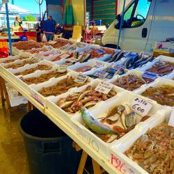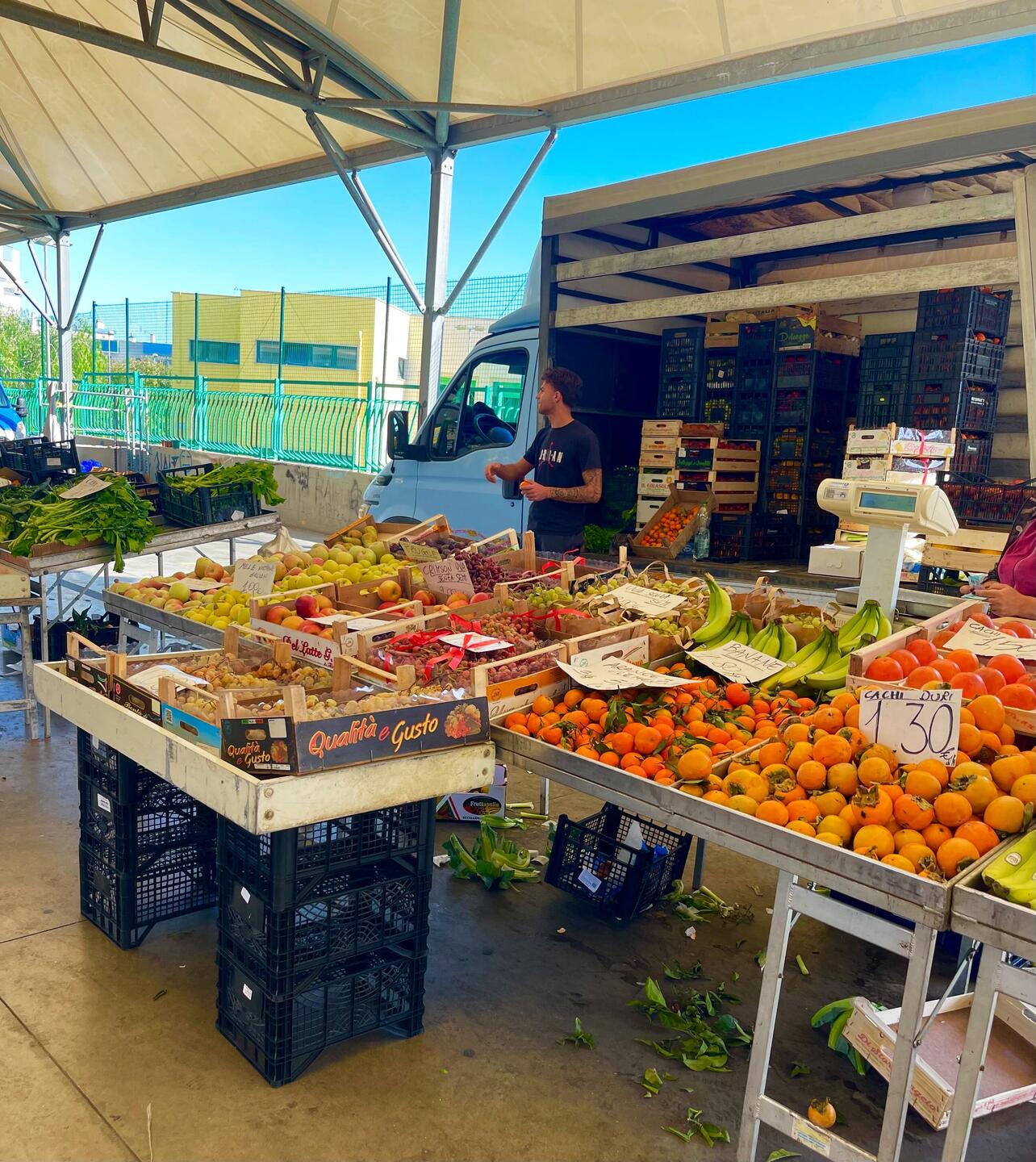 Auf dem Weg nach Vieste legten wir eine kurze Kaffeepause ein und genossen ihn in der Sonne. Auf der Weiterfahrt sahen wir auf einem Platz einen Markt.